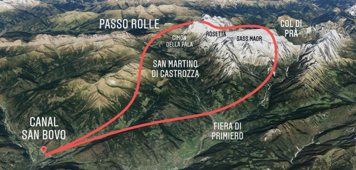 Partenza da Imer in direzione San Martino di Castrozza. Raggiungiamo Passo Rolle affiancando il Cimon della Pala e viriamo a est aggirando le meastose Pale di San Martino fino a Col di Pra e rientriamo a Imer.